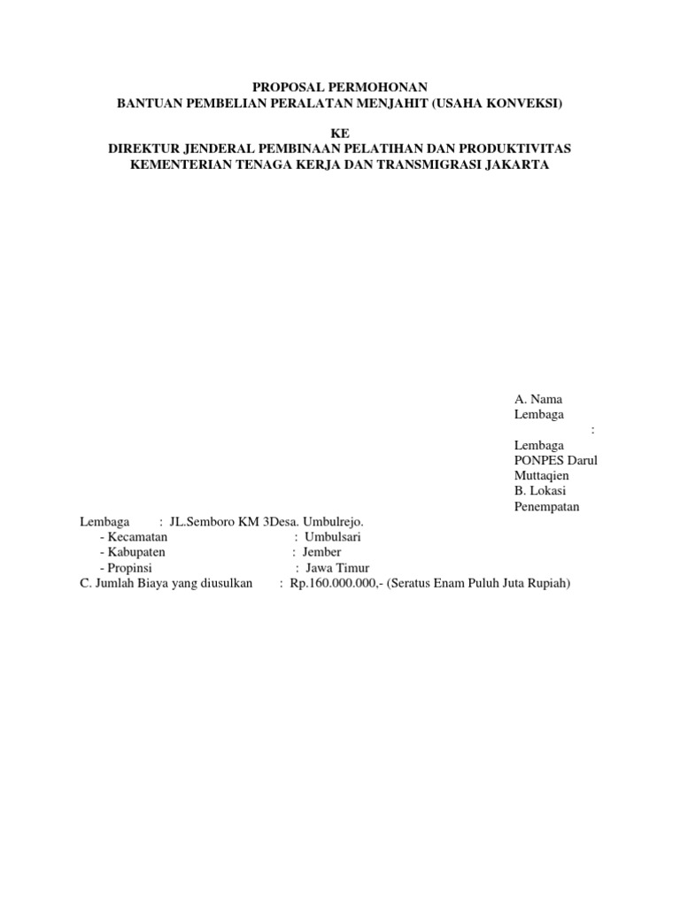 Contoh Proposal Pengajuan Bantuan Mesin Jahit - Berbagi Contoh Proposal