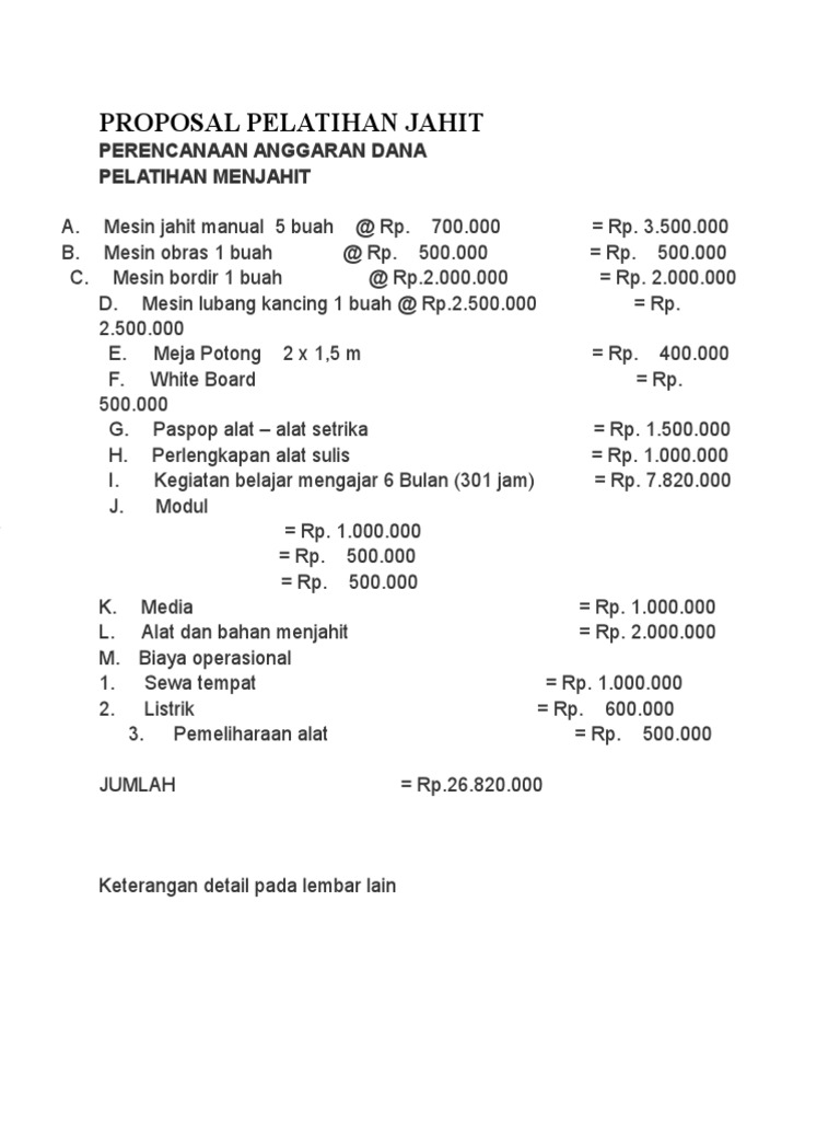 Contoh Proposal Pelatihan Menjahit (Pengdes) dan RAB nya