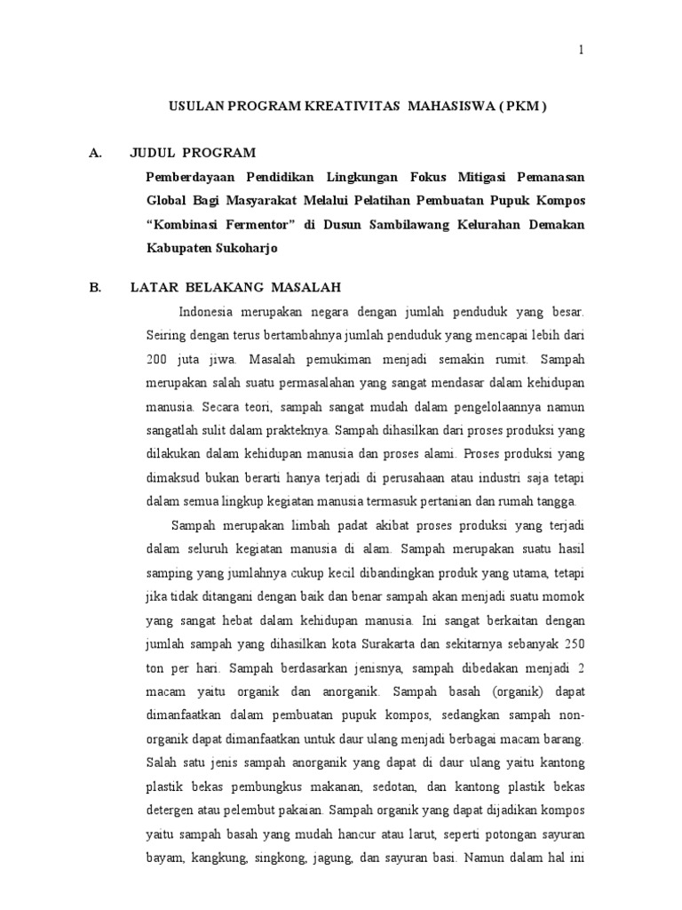 PROPOSAL PROGRAM KREATIVITAS MAHASISWA Pelatihan … - [PDF Document]