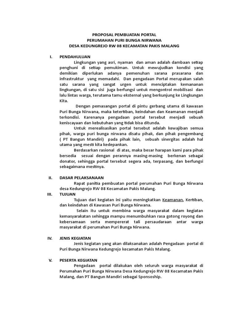 Proposal Pembangunan Gapura Semarang, 01 April 2012 Kepada Yth, … Pembelian besi lat ba .a Pembuatan - [PDF Document]