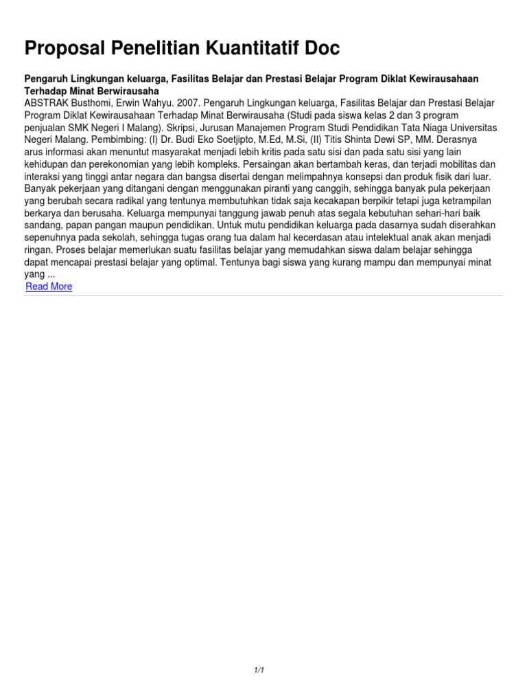 DOC) PROPOSAL PENELITIAN KUANTITATIF Disusun Untuk Memenuhi Ujian …