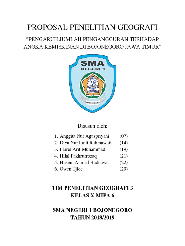 Proposal Penelitian Geografi: “Pengaruh Jumlah Pengangguran Terhadap Angka Kemiskinan Di Bojonegoro Jawa Timur”