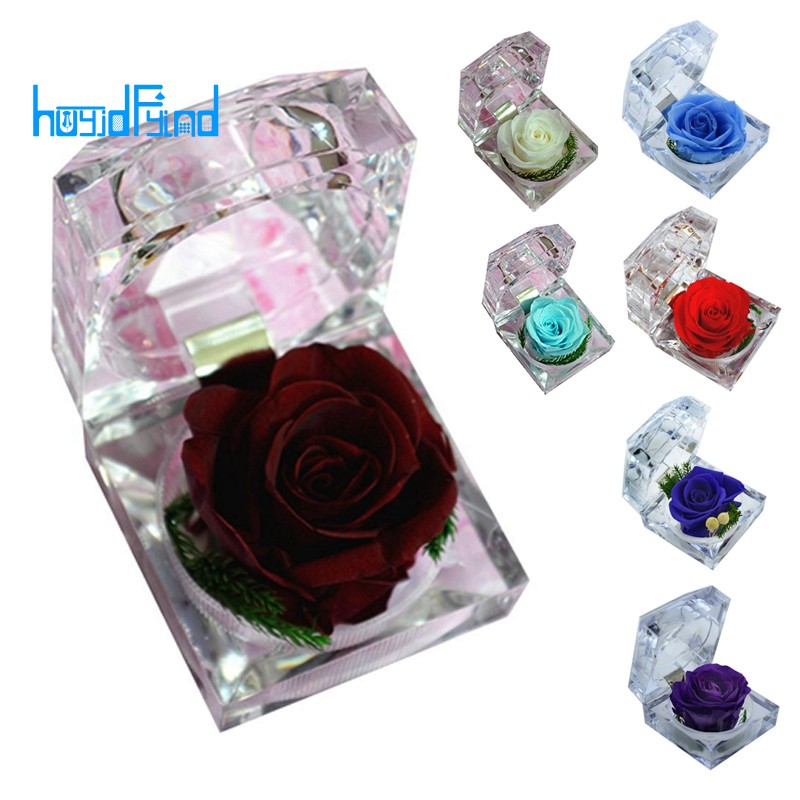 Handmade Preserved Rose With Acrylic Crystal Ring Box For Proposal Engagement (White) | Shopee Indonesia