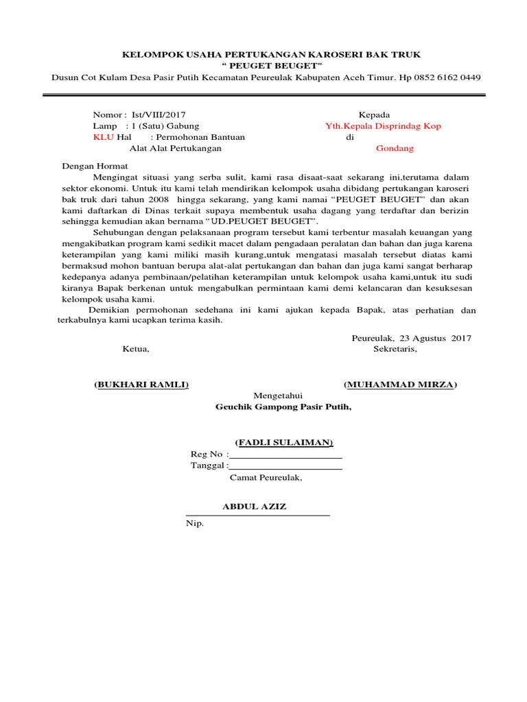 Contoh Proposal Permohonan Bantuan Alat Pertukangan Mebel - Temukan Contoh