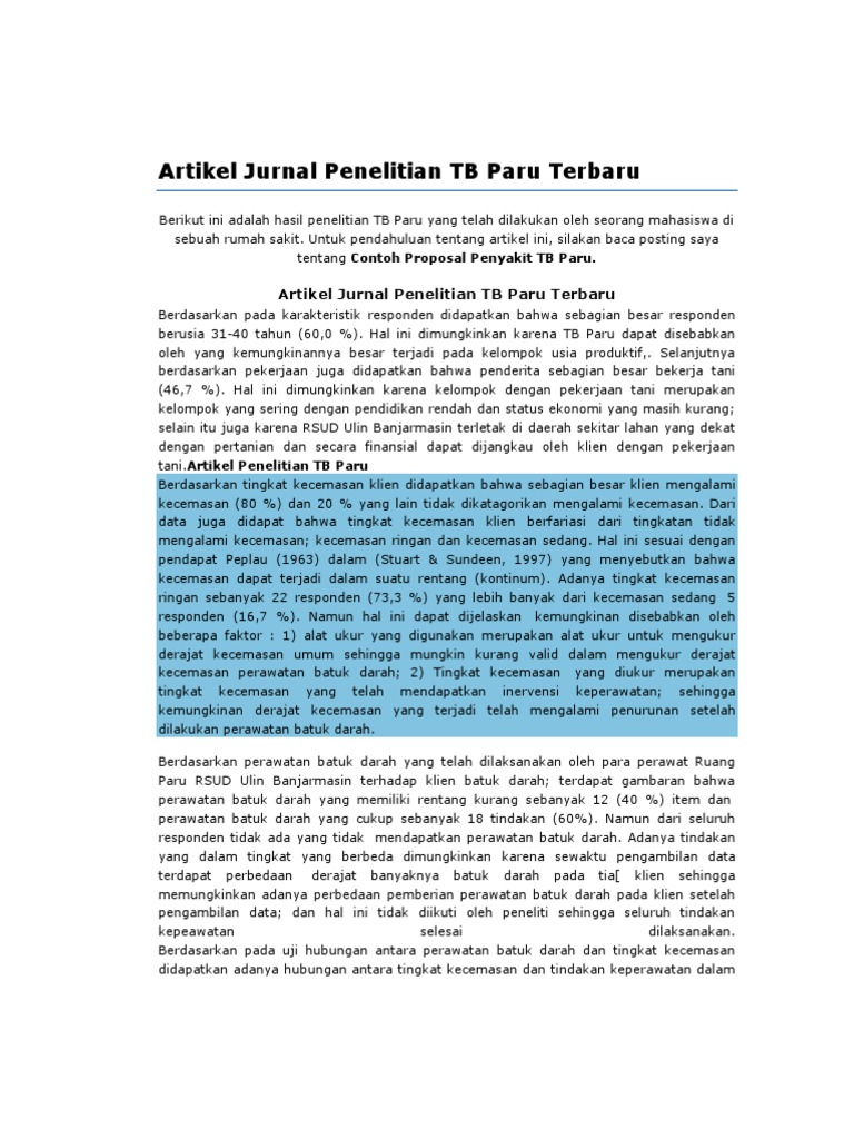 Artikel Jurnal Penelitian TB Paru Terbaru