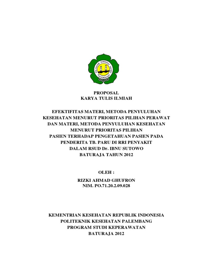 Proposal RIZKI - Efektivitas Materi Dan Metoda Pilihan Perawat Dan Pasien Pada Pengetahuan Penderita Tb Paru