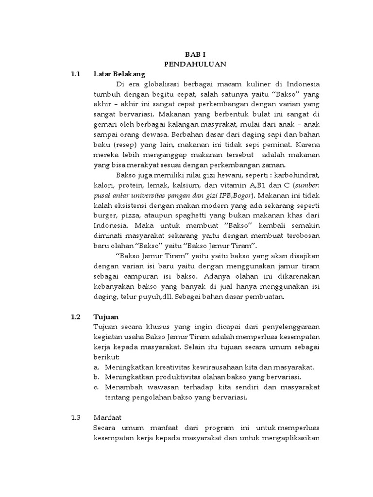 DOC) Contoh Proposal Usaha Makanan Bakso | RaniApriyani Hamidah …