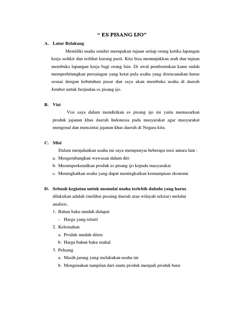 Contoh Proposal Usaha Es Pisang Ijo - Berbagi Contoh Proposal