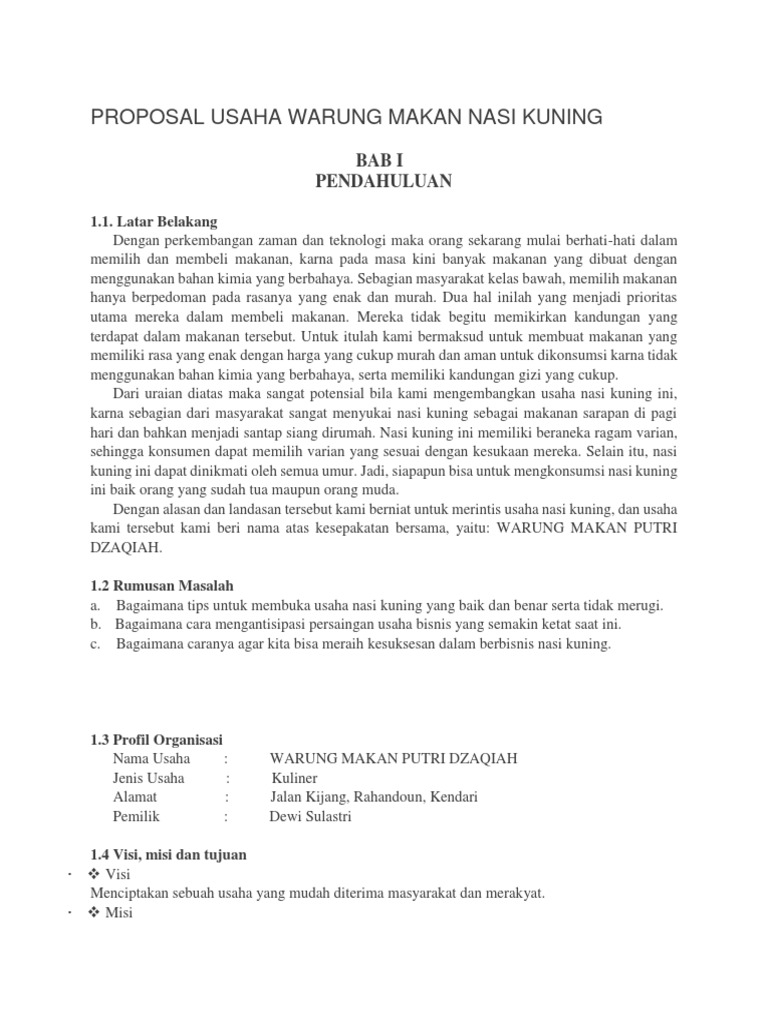 DOC) PROPOSAL USAHA WARUNG MAKAN NASI KUNING | Aufa Hikmah - Academia.edu