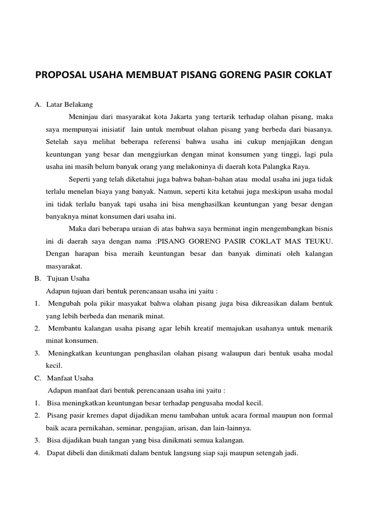 Contoh Proposal Usaha Pisang Keju Pdf - Berbagi Contoh Proposal