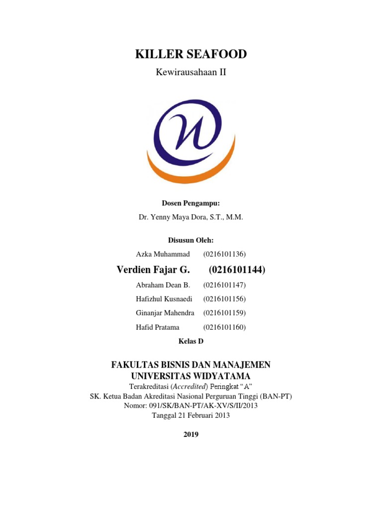FINAL.docx - PROPOSAL BUSINESS PLAN \u201cSATE TAICHAN NAK NAN\u201d MATA KULIAH KEWIRAUSAHAAN Hani Subagio SH MM Disusun oleh 1 Irawaty Pakpahan(141170036 2 | Course Hero