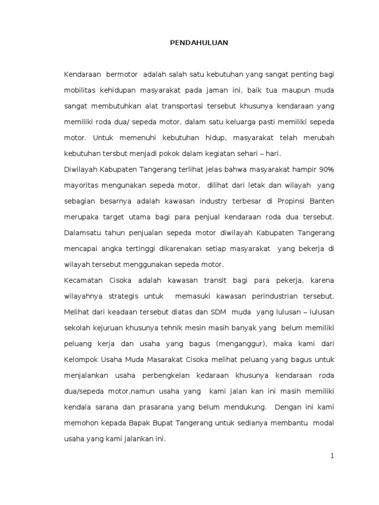 DOC) CONTOH PROPOSAL USAHA BENGKEL MOTOR.docx | safa nuriasyah - Academia.edu