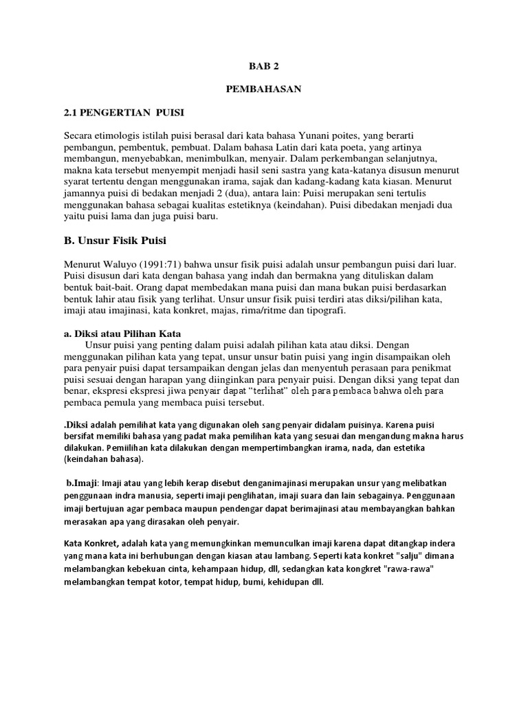 Contoh Puisi Yang Mengandung Struktur Fisik Dan Batin