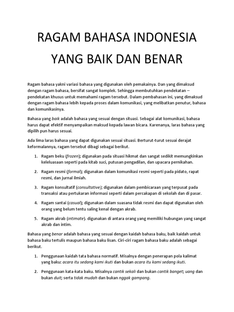 DOC) Ragam bahasa | Irah Karim - Academia.edu