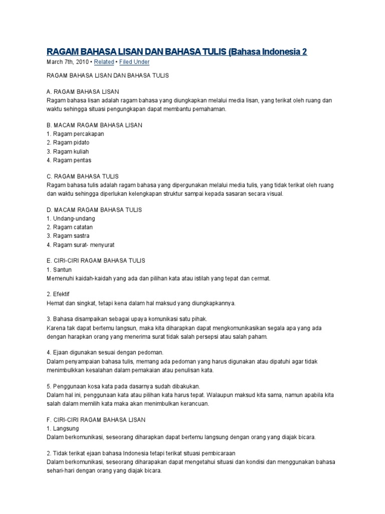 DOC) TUGAS BAHASA INDONESIA CIRI-CIRI RAGAM BAHASA LISAN | Syarif Sam - Academia.edu