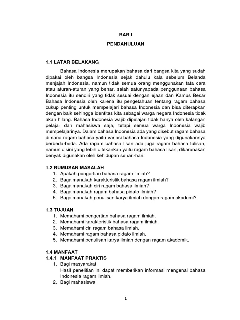 DOC) Bahasa Indonesia Ragam Ilmiah MAKALAH | Sharon Alfa Marlina - Academia.edu