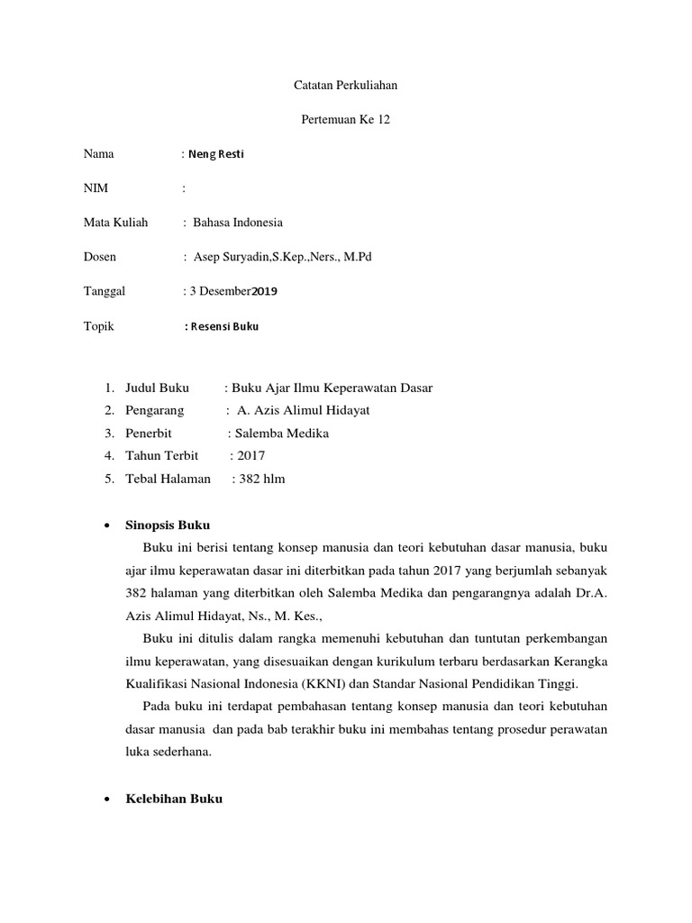 Resensi Buku Klm 2 keperawatan dasar.docx