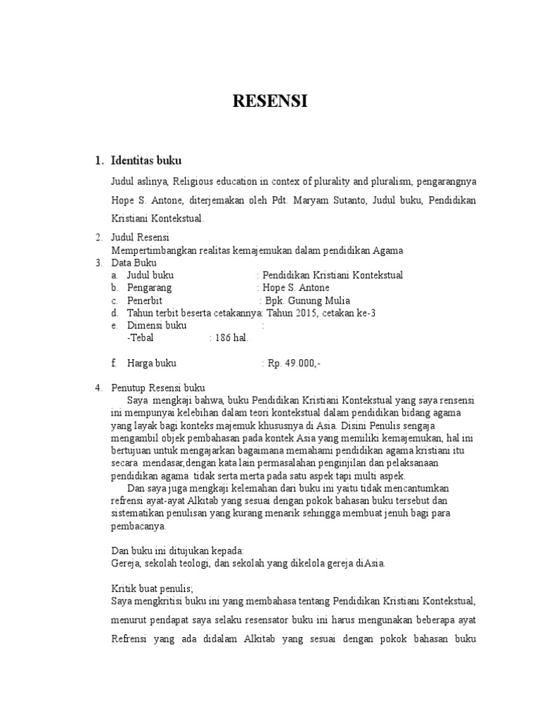 PAK RESENSI Pendidikan Kristiani Kontekstual