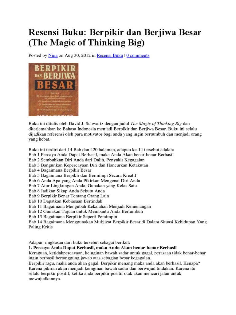 Buku Berjiwa Besar Dan Berpikir Positif