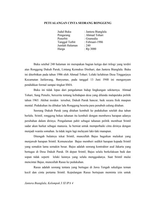 Resensi Novel Ronggeng Dukuh Paruk - artikulasi