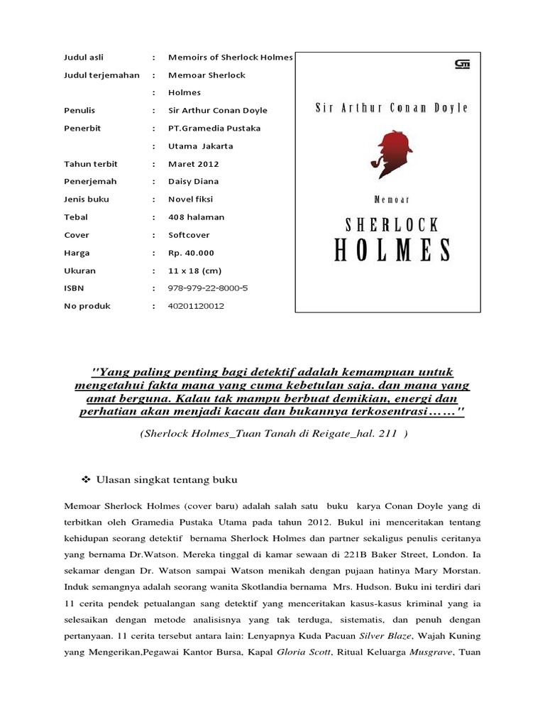Resensi Novel “The Adventure of Sherlock Holmes” Halaman all - Kompasiana.com
