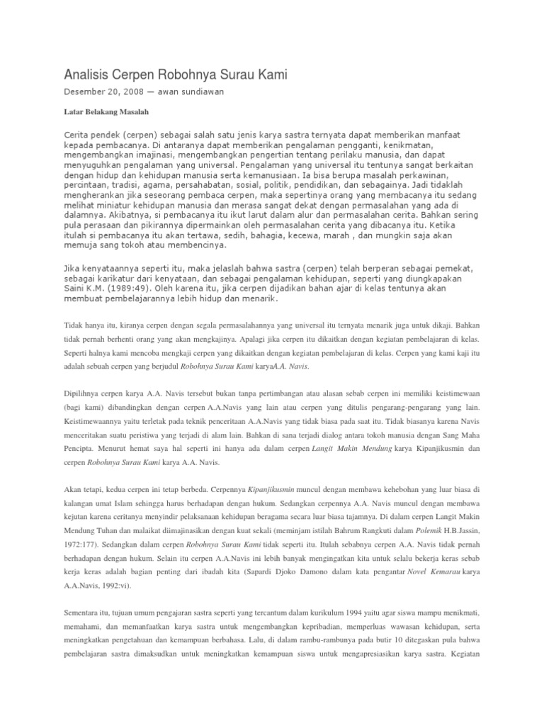 DOC) SINOPSIS Cerpen Robohnya Surau Kami | muhammad akbar - Academia.edu