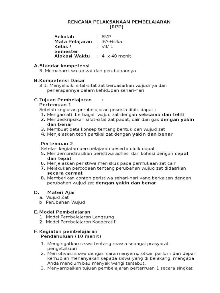 PDF) RPP zat padat,cair dan gas kelas7 | nursidiq aja - Academia.edu