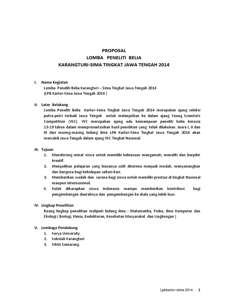 Proposal Lomba Peneliti Belia