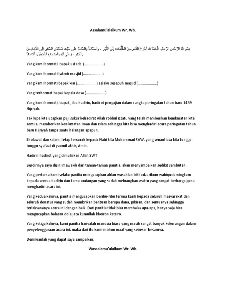 Contoh Kata Sambutan Ketua Panitia 1 Muharram | Blog Pendidikan