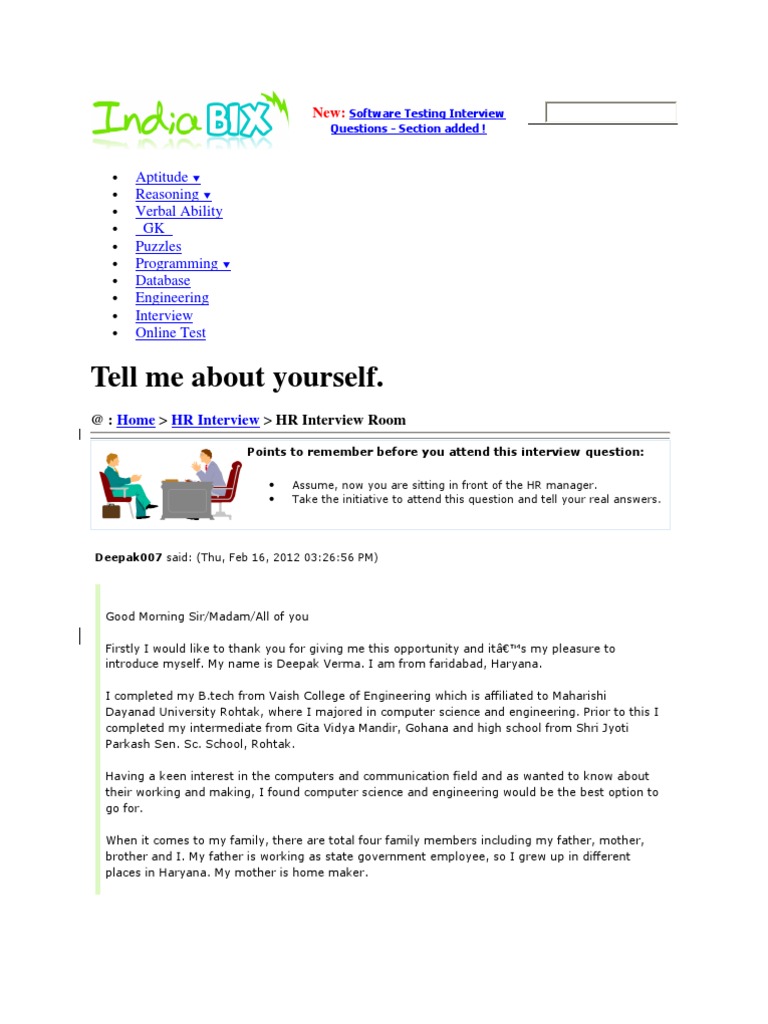 Example Essay Introduce Yourself Interview