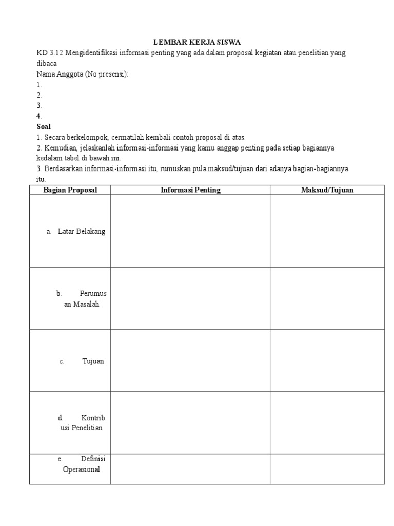 Secara berkelompok cermatilah kembali contoh proposal di atas kemudian jelaskan informasi-informasi - Brainly.co.id
