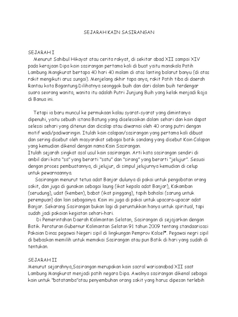 SEJARAH ASAL-USUL KAIN SASIRANGAN ~ WARTAMANTRA