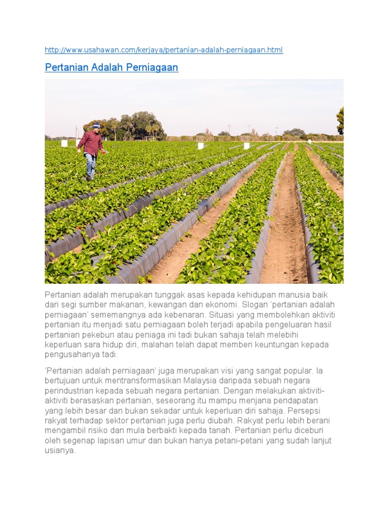 Pertanian Adalah Perniagaan | Usahawan.com