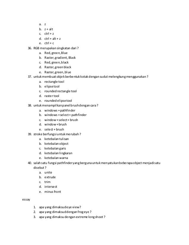 CONTOH LATIHAN SOAL DAN JAWABAN ESSAY DESAIN GRAFIS