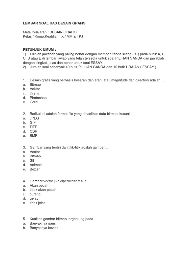 Contoh Soal Desain Grafis Kelas 10 Semester 2 - Guru Ilmu Sosial