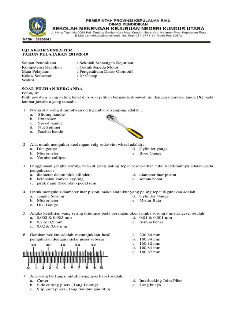 Soal Dan Jawaban Alat Ukur Otomotif - Berbagai Alat