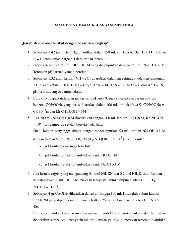 Soal Essay Kimia Kelas Xi Semester 2