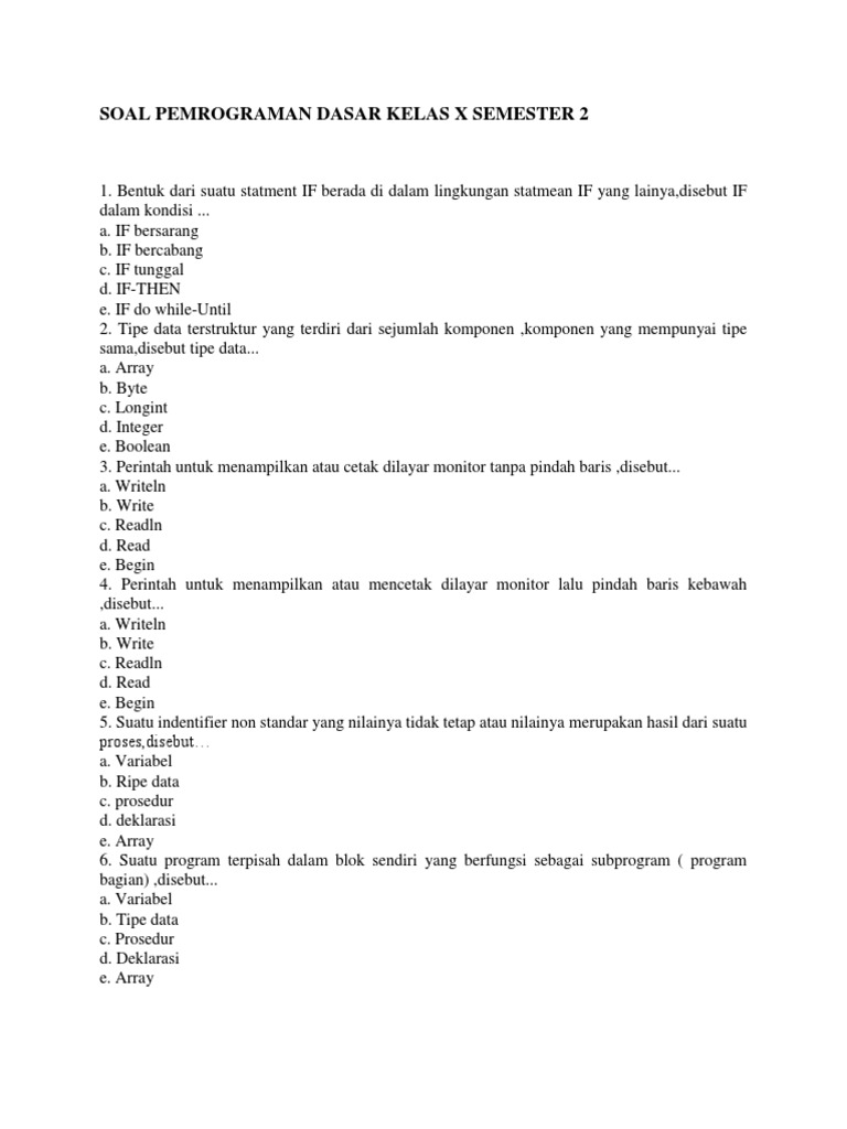 Contoh Soal Pemrograman Dasar Kelas 10 - Contoh Soal Terbaru