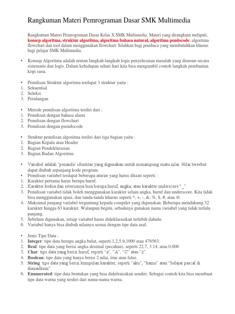 Rangkuman Materi Pemrograman Dasar SMK Multimedia