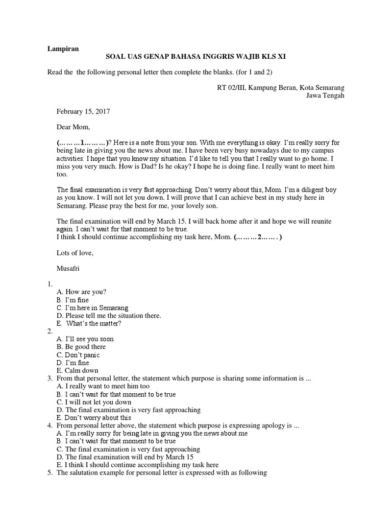 Contoh Soal Personal Letter Sma Dan Jawaban - Dapatkan Contoh