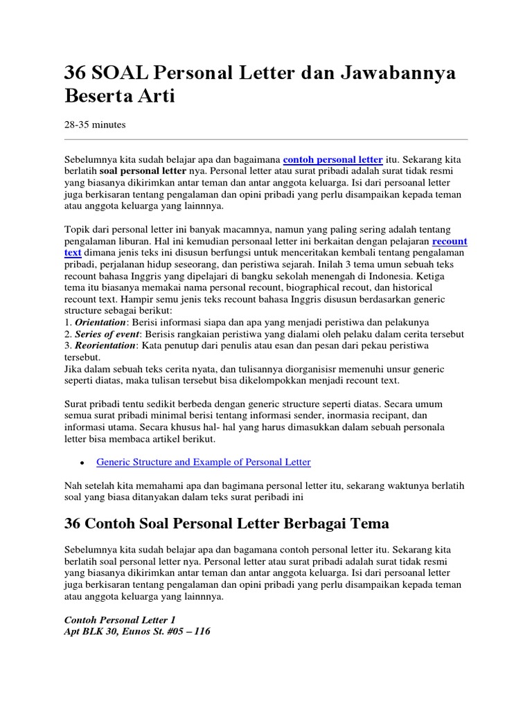 Contoh Soal Personal Letter Beserta Jawaban - Barisan Contoh