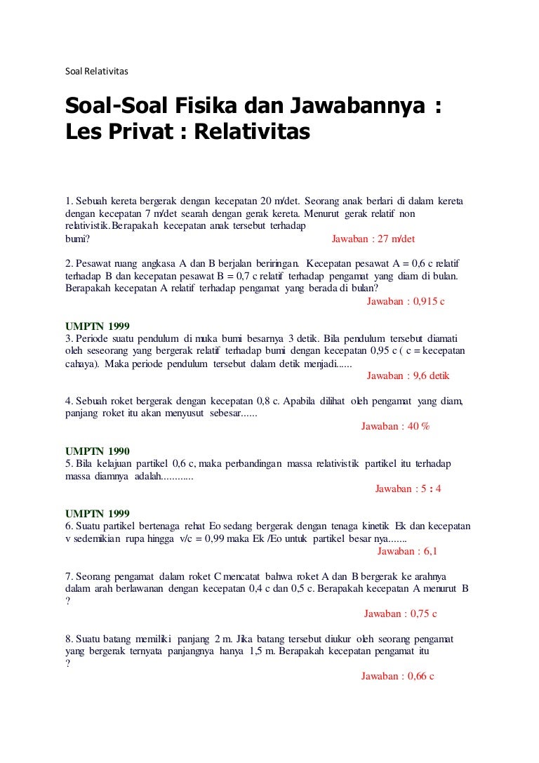 Soal Dan Pembahasan Relativitas - Guru Ilmu Sosial