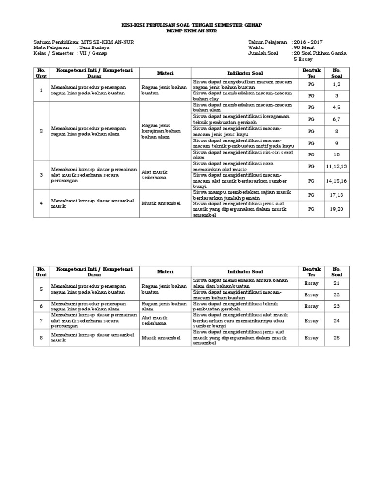 Soal Uas Seni Budaya Smp - Guru Ilmu Sosial