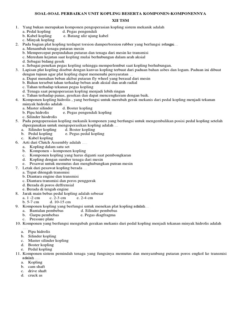 11 Contoh Soal Melakukan Perbaikan Sistem Kopling SMK Otomotif …