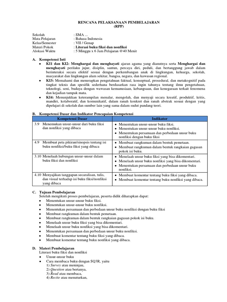 Contoh RPP K13 Bahasa Indonesia Literasi Buku Fiksi dan Nonfiksi …