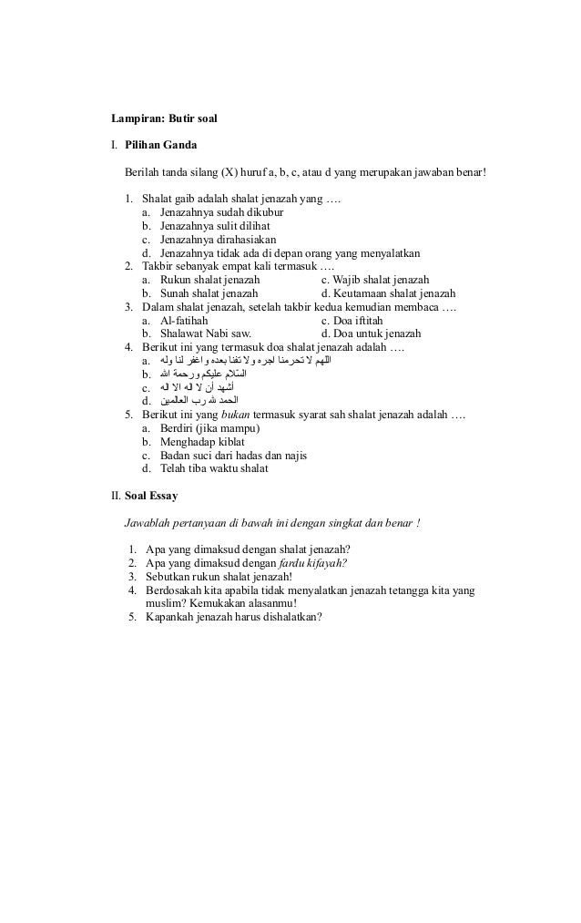 Free - shalat jenazah kelas vii.g … Essay 1 2 3 4 5 6 Lampiran: Butir soal I. … kumpulan soal pilihan ganda pkn dengan kuncinya;