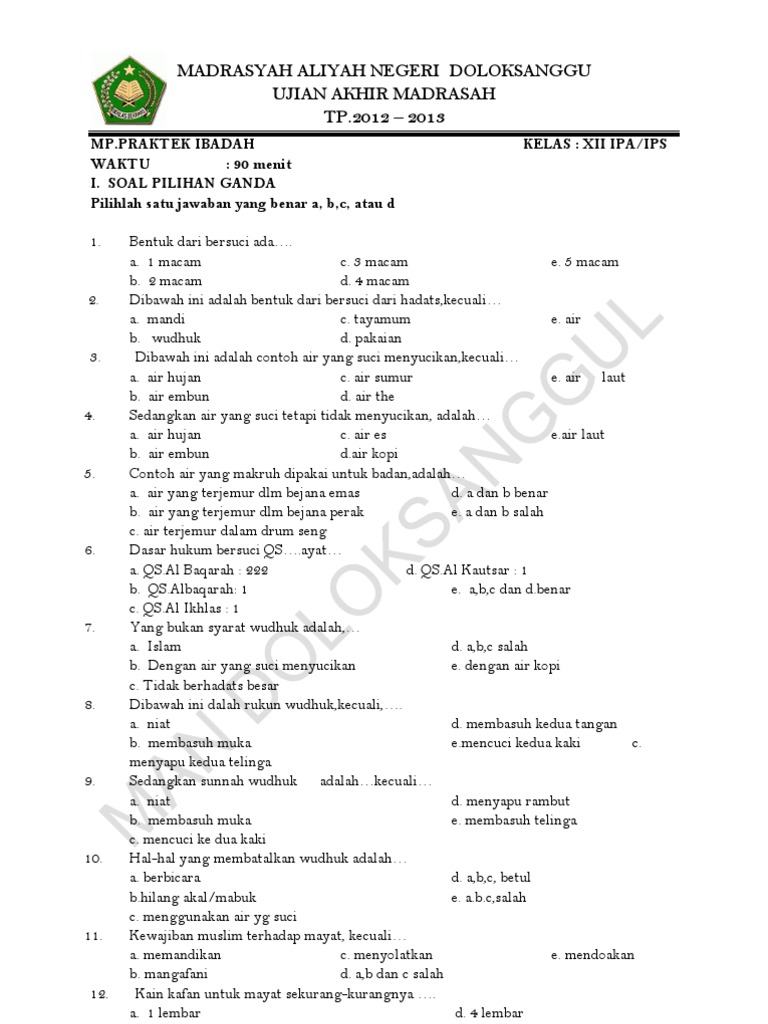 Soal Praktek Ibadah Xii Man Ds'