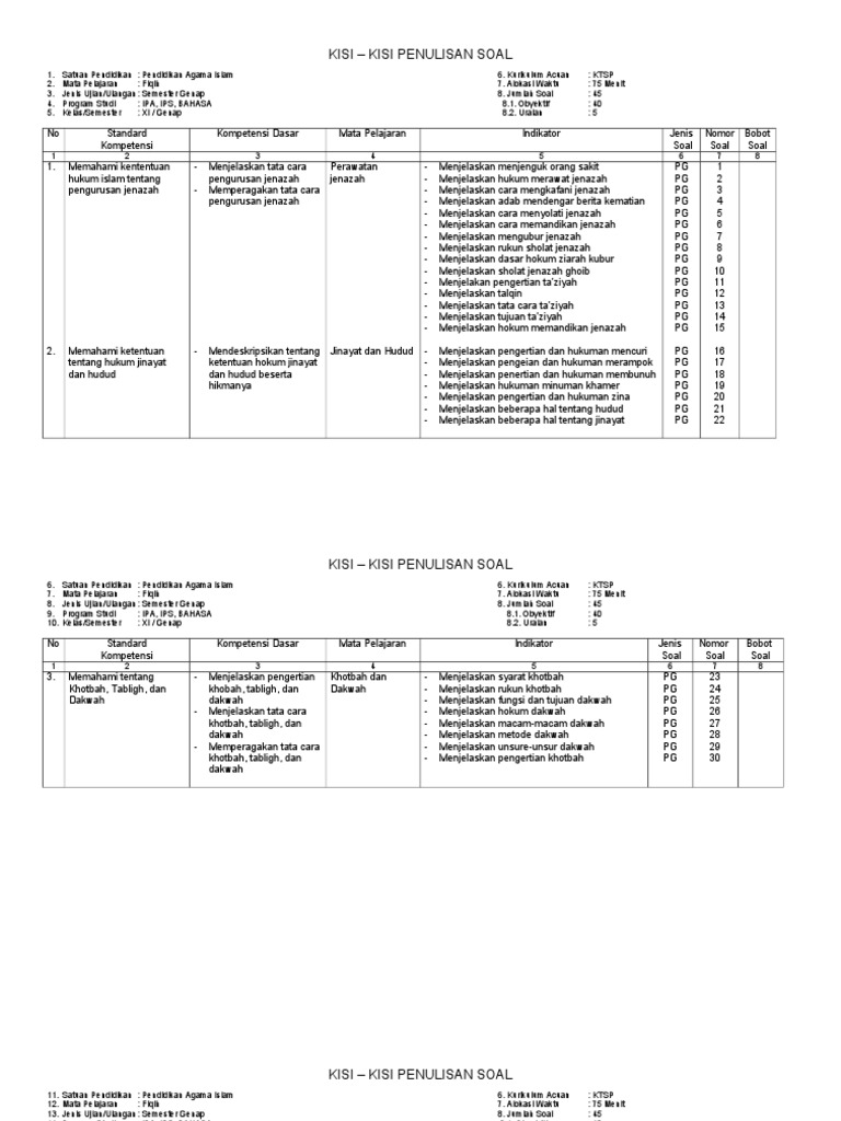 Kisi Kisi Pendidikan Agama Islam Kelas Xi Semester 2