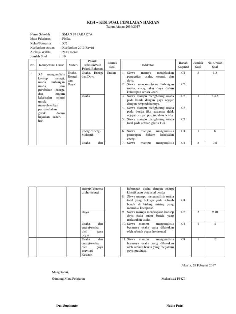 PDF) RPP Fisika Kurikulum 2013 - Usaha oleh Energi Kinetik dan Energi Potensial | I Gede Dana Santika - Academia.edu