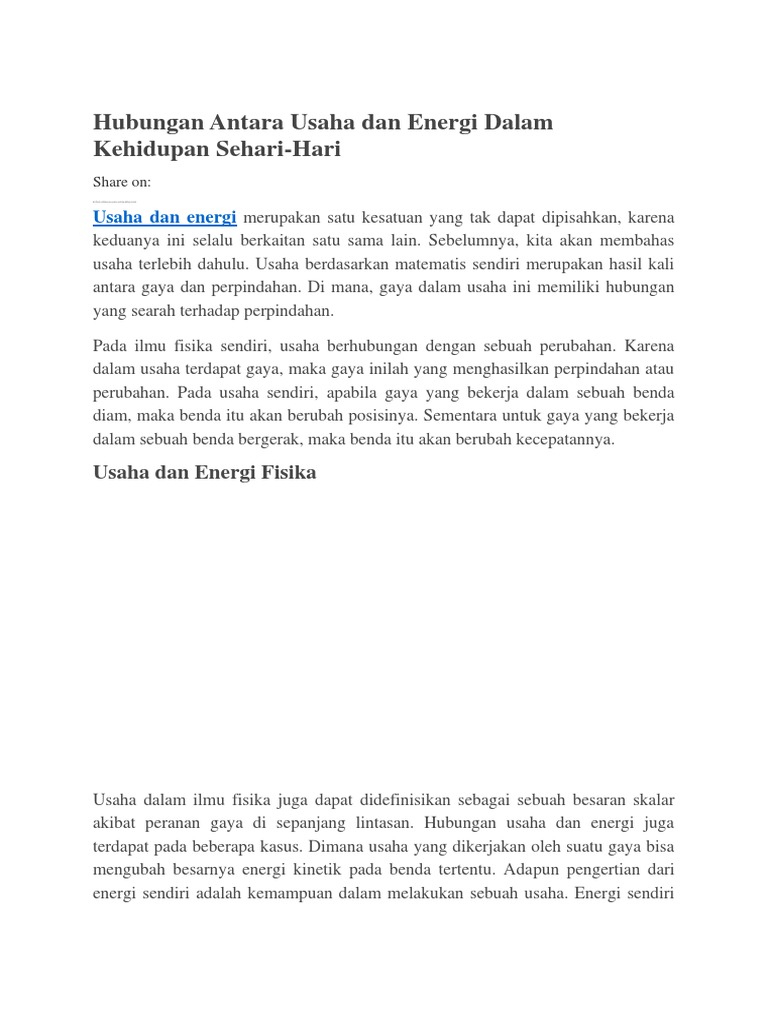 Hubungan Antara Usaha Dan Energi Dalam Kehidupan Sehari